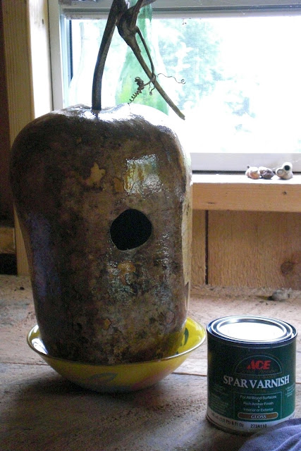 Well, now I know that it was an apple gourd and this summer I decided I would make it into a birdhouse for my dad for Father's Day.