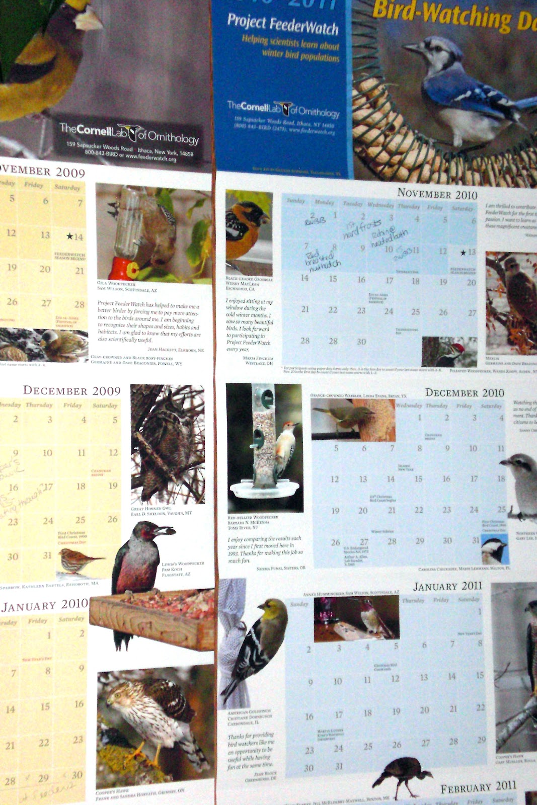 I have just entered my count site information - a description of the feeding area I have set up and that I will be watching. And, I have put up this year's calendar - next to last year's because I like to compare my notes against last year's. If I had room, I would hang all three years.